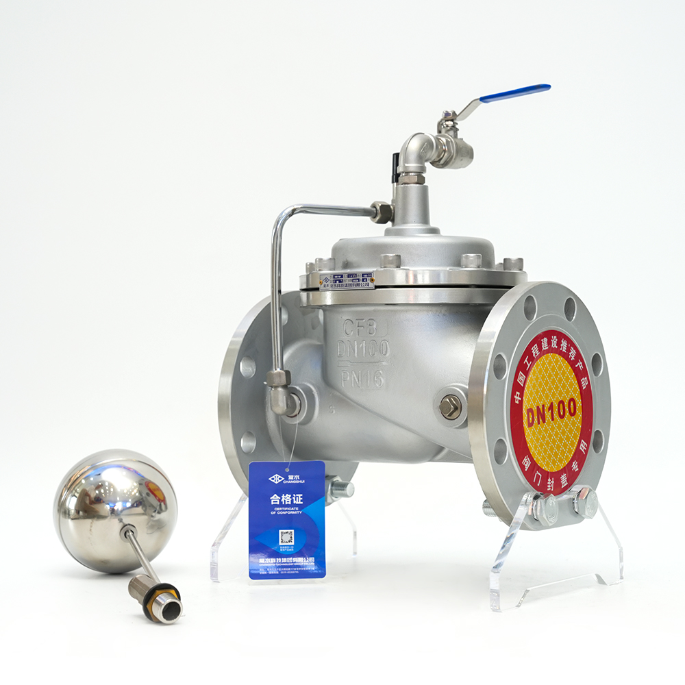 रिमोट कंट्रोल फ्लोट वाल्व में एक मुख्य वाल्व और एक बाहरी गाइड वाल्व होता है। यह तरल स्तर में परिवर्तन के कारण गाइड वाल्व को जोड़ने के लिए पानी में फ्लोटिंग बॉल का उपयोग करता है, ताकि मुख्य वाल्व पानी की आपूर्ति करे और बंद हो जाए, जिससे ओवरफ्लो और कम जल स्तर को रोकने के लिए एक निश्चित सीमा के भीतर पूल (टैंक) और जल टावर के जल स्तर को नियंत्रित किया जा सके। यह वाल्व औद्योगिक और खनन उद्यमों और नागरिक भवनों में विभिन्न पूलों (टैंकों) और जल टावरों की स्वचालित जल आपूर्ति प्रणालियों के लिए उपयुक्त है और इसका उपयोग वायुमंडलीय बॉयलर परिसंचारी जल आपूर्ति प्रणालियों में भी किया जाता है। मुख्य वाल्व बिना पानी के झटके के तेजी से खुलता है और धीरे-धीरे बंद होता है। इसे कसकर सील किया गया है और बाढ़ का कोई खतरा नहीं है।